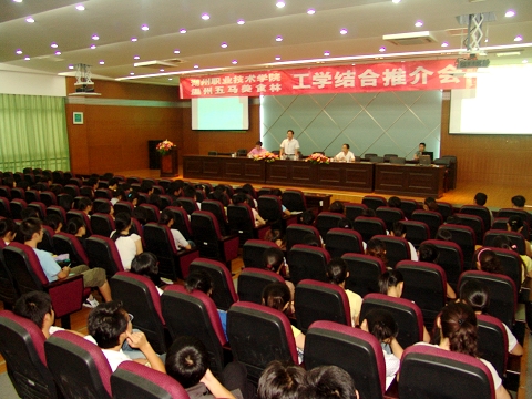 9月1日下午,温州五马美食林酒店有限公司在我校一号报告厅,为旅游专业06级学生举行了工学结合的推介会。在会上,公司人力资源部郑怀音主任作了热情洋溢的讲话,介绍了企业的情况,对工学结合的岗位要求及相关待遇作了说明,最后诚挚邀请我校学子加盟企业,鼓励他们勇敢地去温州闯一闯,实现自己的职业生涯规划。