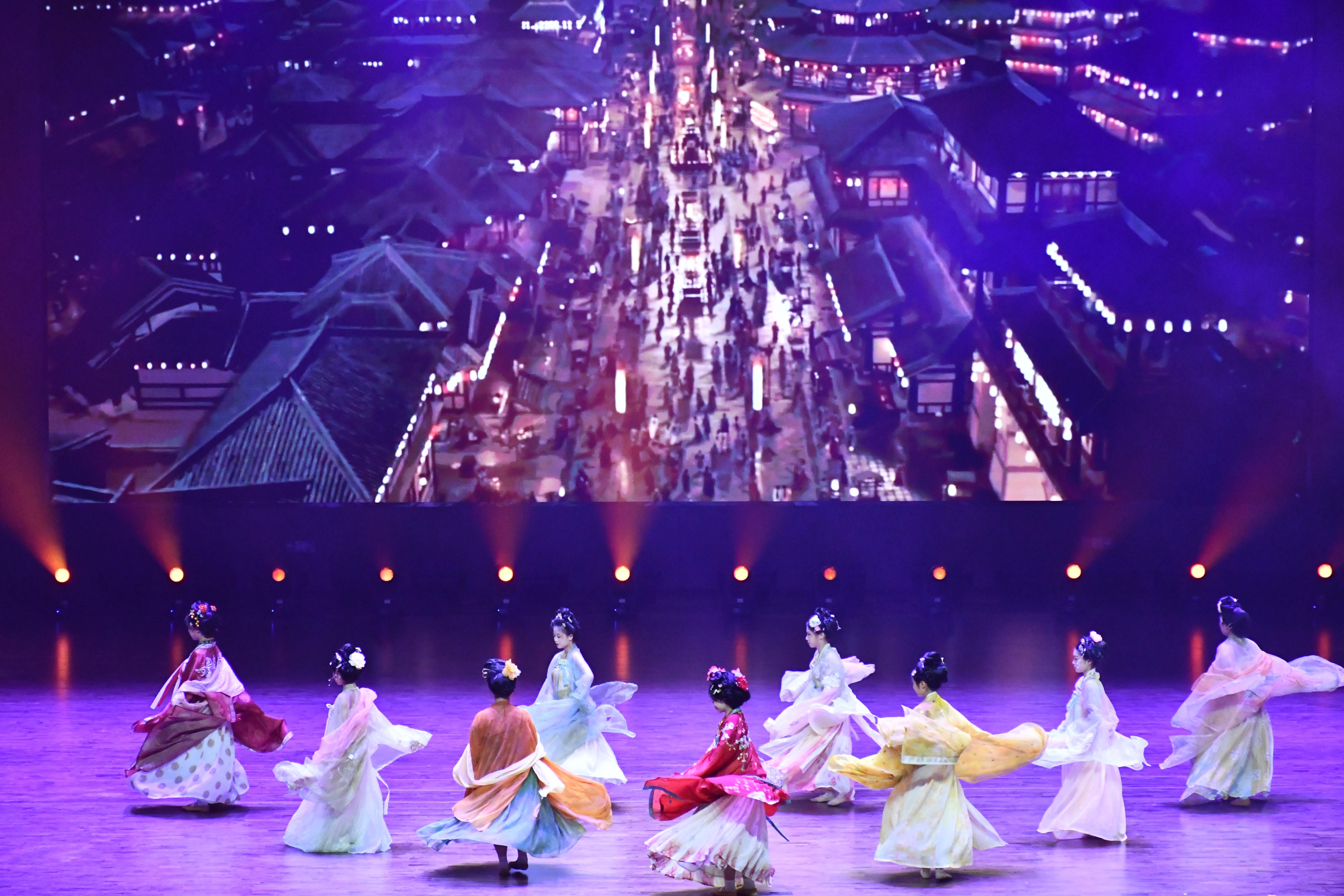 舞蹈板块百花齐放。校艺术团舞蹈团《天浴》借水幕与光影,演绎高原圣洁之美;舞蹈协会《我最红》以都市节拍与利落编舞,彰显“我就是主角”的青春气场;倾梦汉服社《梦回·长安十二时》则带领观众穿越千年,以曼妙水袖与盛世唐音,勾勒十二时辰的锦绣长安。