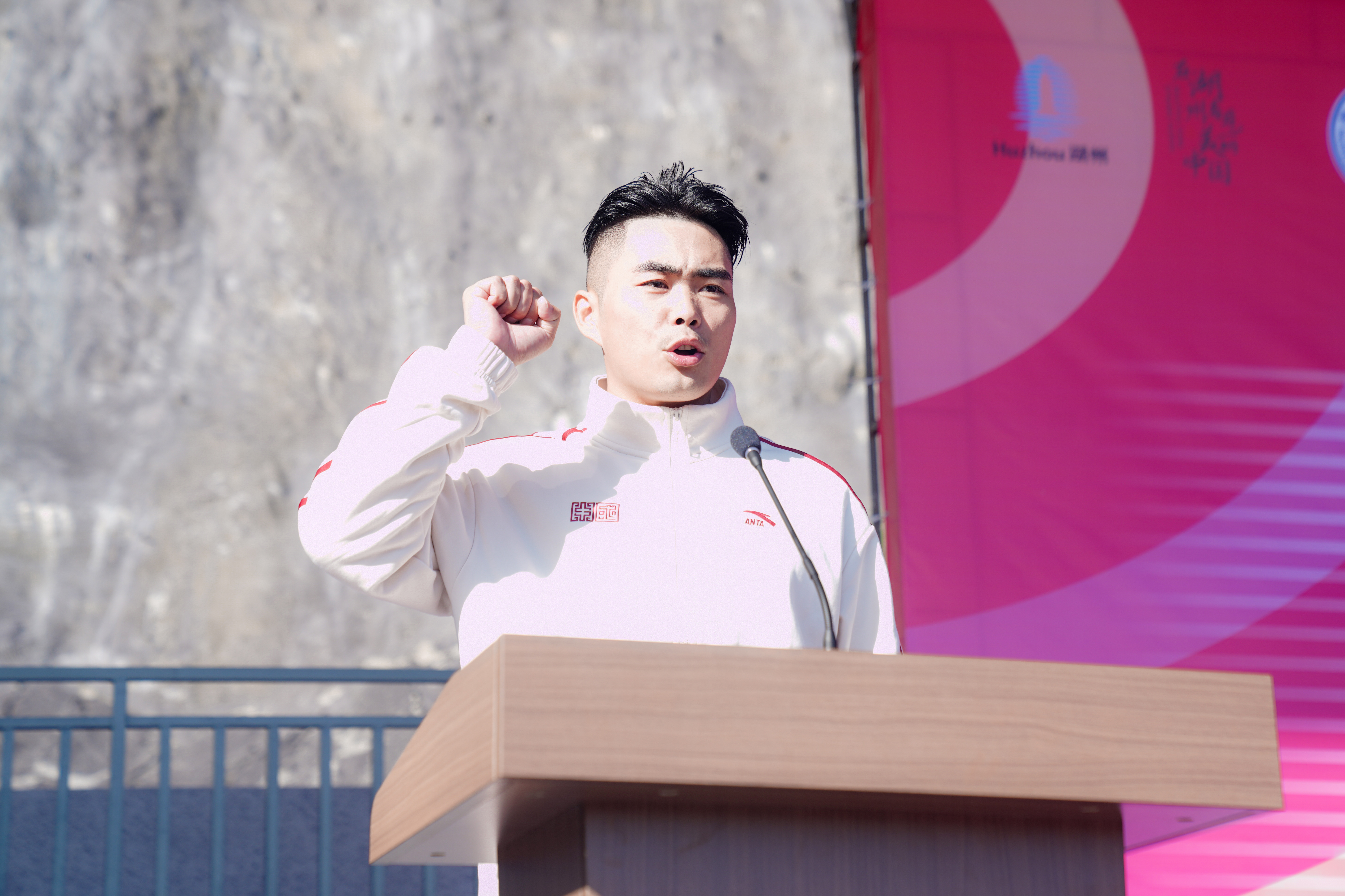 运动员代表潘巍同学、裁判员代表刘桂杨老师郑重宣誓。