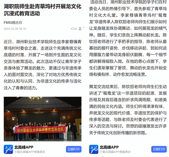 【北高峰】湖职院师生赴青草坞村开展龙文化沉浸式教育活动