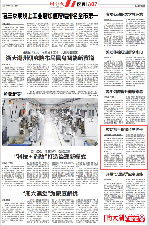2025年11月17日《湖州日报》报道学校开展校幼合作开展科普活动的相关新闻。